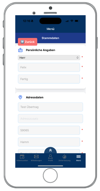 In diesem Bereich werden Ihnen Ihre eigenen Daten aus Ihrer Mitarbeiterakte aufgelistet.